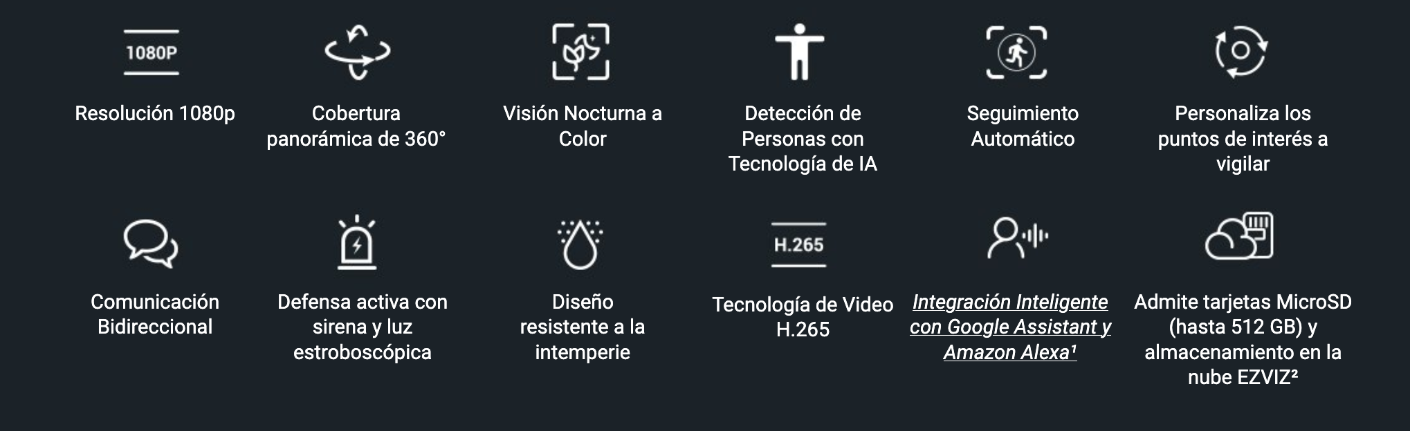 Al heredar las tecnologías principales de la galardonada serie de cámaras con paneo e inclinación para exteriores de EZVIZ, la H8c cuenta con múltiples funciones inteligentes en una unidad compacta para una protección del hogar simplemente inteligente. Esta cámara de confianza y accesible es ideal para cualquier clima y funciona de forma estable en plataformas de Internet residenciales.